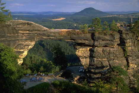 Unikátní útvar Českého Švýcarska patří k našim nejznámějším přírodním pokladům. Tahle největší pískovcová brána v Evropě byla vyhlášena přírodní památkou. Její rozměry jsou nevídané. Rozpětí oblouku přesahuje 26metrů, výška otvoru je 16metrů, jeho šířka dosahuje 7 až 8 metrů.Vrcholová plošinabrány se tyčíve výšce 21metrů. Útvar vznikající miliony let lákal už naše předky. První cesta k němu byla vydlážděna už bezmála před půldruhým stoletím.